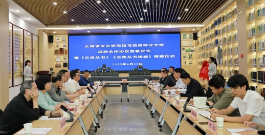 6月25日,西南林业大学与云南省文史研究馆在西南林业大学世界茶叶图书馆举行战略合作协议签署暨《云南丛书》赠藏仪式。