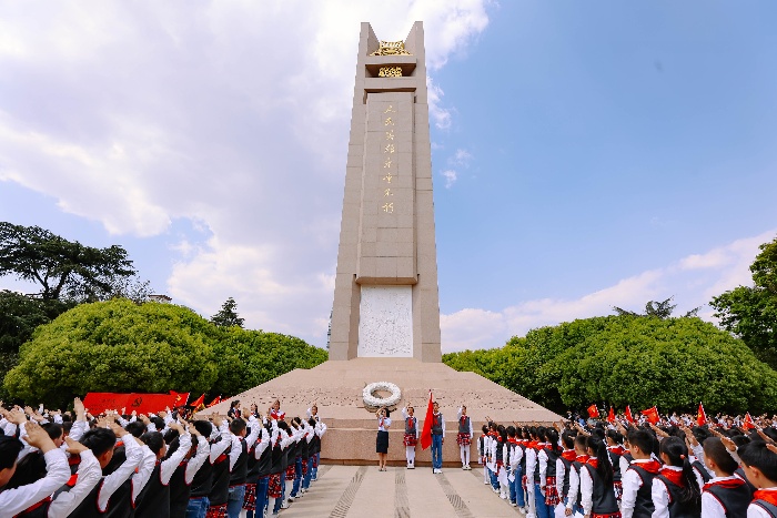 春城小学教育集团的师生在抗战胜利纪念堂开展清明祭英烈及入队仪式。云南日报 记者胡妤雅 摄