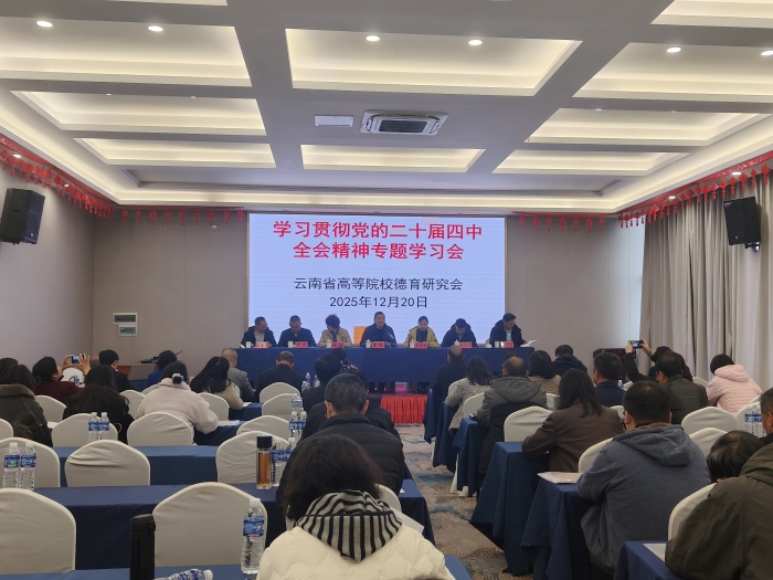 为深入学习贯彻党的二十届四中全会精神,进一步凝聚高校德育工作合力,云南省高等院校德育研究会于12月20日在昆明召开“学习贯彻党的二十届四中全会精神”专题学习会暨云南省高等院校德育研究会理事(扩大)会。来自云南省高等院校德育研究会46家成员高校的70余位专家学者齐聚一堂,共同围绕全会精神的学习宣传贯彻、落实立德树人根本任务等主题展开深入研讨交流。