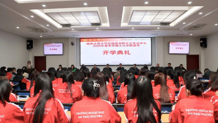 3月5日,代表团出席越南太原大学外国语学院中文专业留学生开班典礼。文山学院党委书记桂正华会见代表团一行,校长谷雨与代表团座谈交流,共叙友谊与学校办学特色。