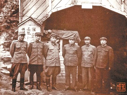 1951年秋,陈赓(右二)与彭德怀、金日成等在朝鲜桧仓郡矿洞
