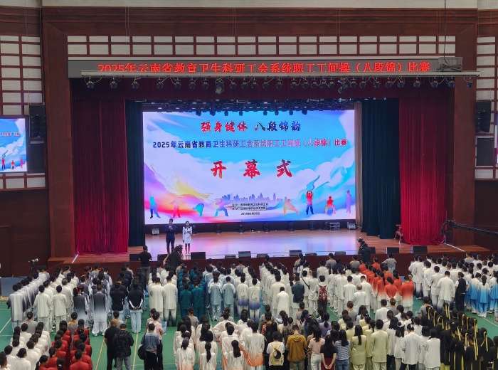 6月26日,由云南省教育卫生科研工会主办、云南机电职业技术学院承办的2025年云南省教育卫生科研工会系统职工工间操(八段锦)比赛在昆明举行。来自全省教育、卫生、科研单位的46支代表队1300余名职工参赛,以八段锦展演展现职工健康向上的精神风貌,推动全民健身与传统文化深度融合。