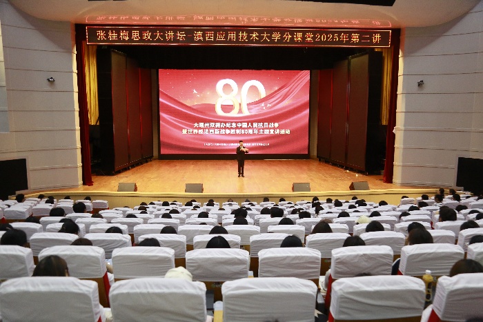 在全国上下隆重纪念中国人民抗日战争暨世界反法西斯战争胜利80周年之际,9月5日,滇西应用技术大学联合大理州双拥办、大理州退役军人事务局组织开展“张桂梅思政大讲坛—滇西应用技术大学分课堂”2025年第二讲,邀请大理籍开国中将赵镕将军的女儿赵京娅、周保中将军纪念馆讲解员黑梅涛等人作题为“铭记历史、传承精神、砥砺前行”的主题宣讲,激励广大师生增强爱国情怀、勇担新时代使命。