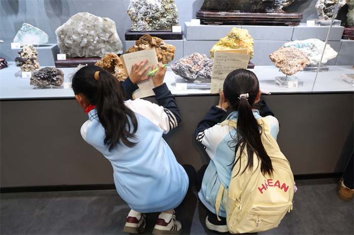 新生小学师生参观了云南能源职业技术学院的煤矿地质科普基地、新能源实训基地及智能制造实训基地。在煤矿地质科普基地,小学生们被丰富的岩石标本、地层模型和采煤历史展陈深深吸引。讲解教师向大家介绍了煤炭的形成、开采与利用历程,孩子们通过亲手触摸煤层标本、观察矿物晶体,以及互动问答等环节,真切地感知到了书本中的地理知识。在新能源实训基地,工作人员动态演示了光能、风能如何转化为清洁电力,太阳能光伏板、风力发电模型、储能设备等现代能源设施让师生们近距离了解了电力的转换过程。在智能制造实训基地,工业机器人、自动化生产线和3D打印设备被孩子们团团围住,当看到机械臂精准完成的各种搬运、装配等动作时,孩子们发出了阵阵惊叹。在“模拟智能工厂”区域,孩子们分组体验了编程控制基础流程,直观感受到“中国智造”的技术魅力。负责解说的基地教师表示,希望通过这些展示,在孩子们心中播下科技和创新的种子。