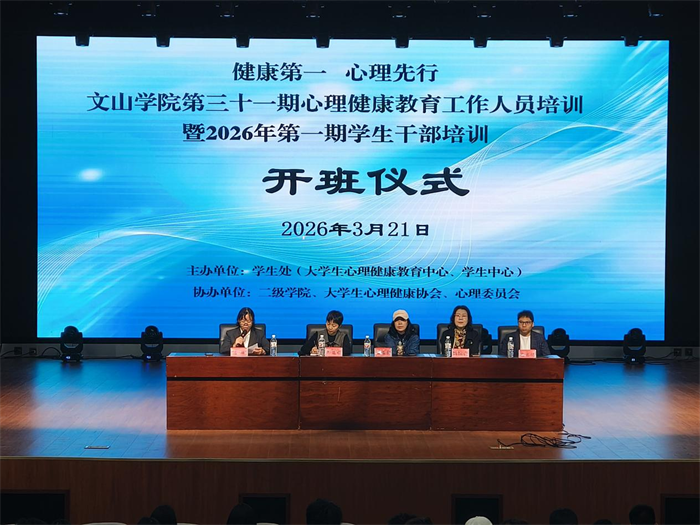 为深入贯彻落实教育部及省教育厅“健康第一”相关工作部署要求,切实推进“全员育心”工作格局建设,文山学院于3月11日至21日成功举办第三十一期心理健康教育工作人员培训暨2026年第一期师生骨干培训系列活动,500余名师生分批次参训。
