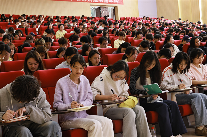 蔡朝东老师以其深厚的家国情怀、丰富的军旅生涯与基层工作经历,围绕“信念”与“责任”两大主题,进行了近三个小时声情并茂、感人至深的讲述。他从“忠孝”一体、家国同构的传统文化理念切入,指出对党和人民的忠诚是最高层次的“孝”,并深情回顾老山前线故事,包括“理解万岁”口号和烈士感人事迹,如百岁母亲亲吻墓碑的场景及年轻战士的遗言。他动情指出:“和平是用生命换来的。”这些内容令师生深受触动。蔡朝东老师还紧扣“信念是精神支柱,责任是立身之本”的主线,从价值观、道德观、审美观三个维度,剖析了当代青年坚定理想信念的重要性。他强调,老山战士用生命践行了“祖国在我心中”的誓言,新时代青年更应“比信念、比责任、比艰苦、比奉献”。