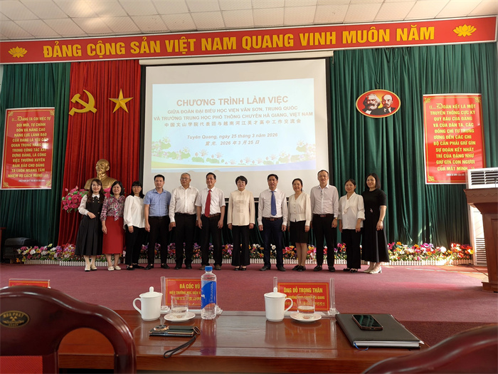3月24日至26日,文山学院校长谷雨率代表团赴越南宣光省开展教育专项交流。代表团先后走访太原大学河江分校、太原大学宣光培训、科技与创业中心、河江英才高中,以及宣光省教育与培训厅,圆满完成校际合作洽谈与留学生招生宣传各项工作任务。